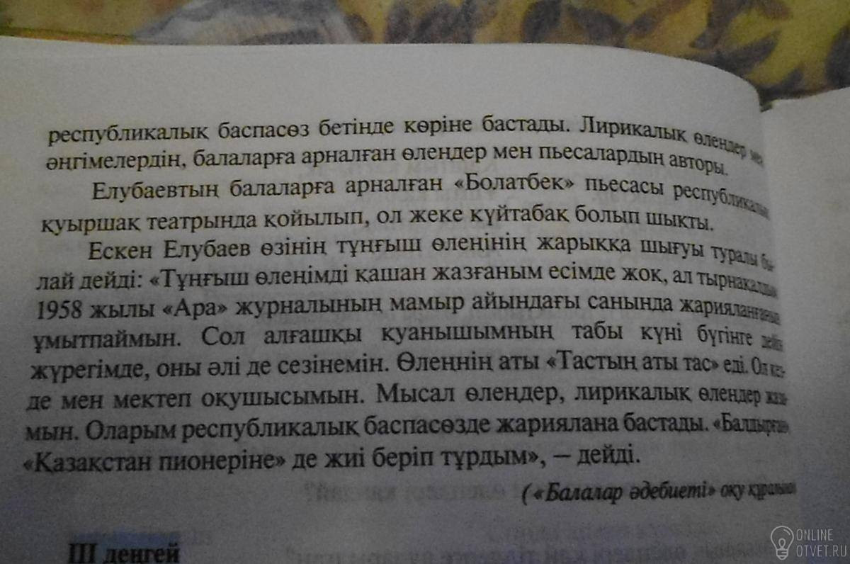 Не нашли подходящего ответа на вопрос или ответ отсутствует? Воспользуйтесь поиском по сайту, чтобы найти все ответы на похожие вопросы в разделе Қазақ тiлi.