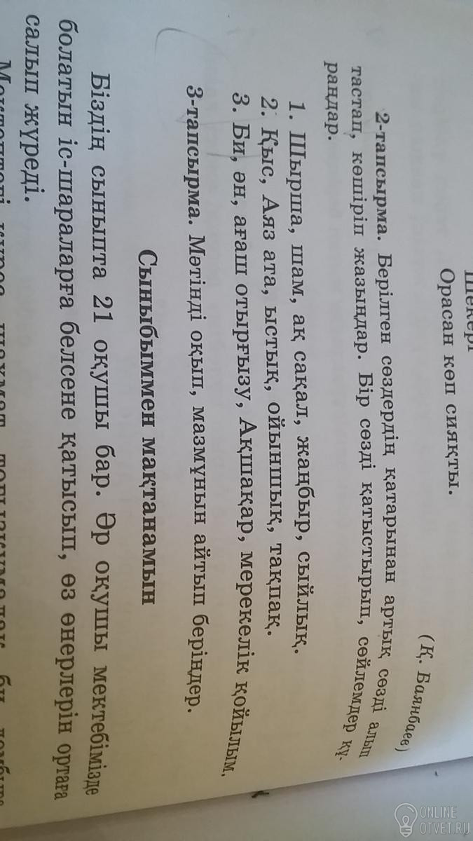 Не нашли подходящего ответа на вопрос или ответ отсутствует? Воспользуйтесь поиском по сайту, чтобы найти все ответы на похожие вопросы в разделе Қазақ тiлi.