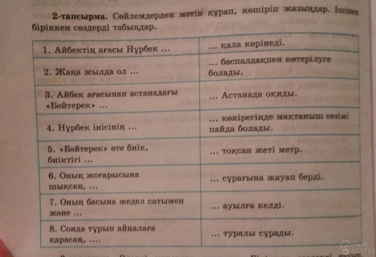 Не нашли подходящего ответа на вопрос или ответ отсутствует? Воспользуйтесь поиском по сайту, чтобы найти все ответы на похожие вопросы в разделе Қазақ тiлi.