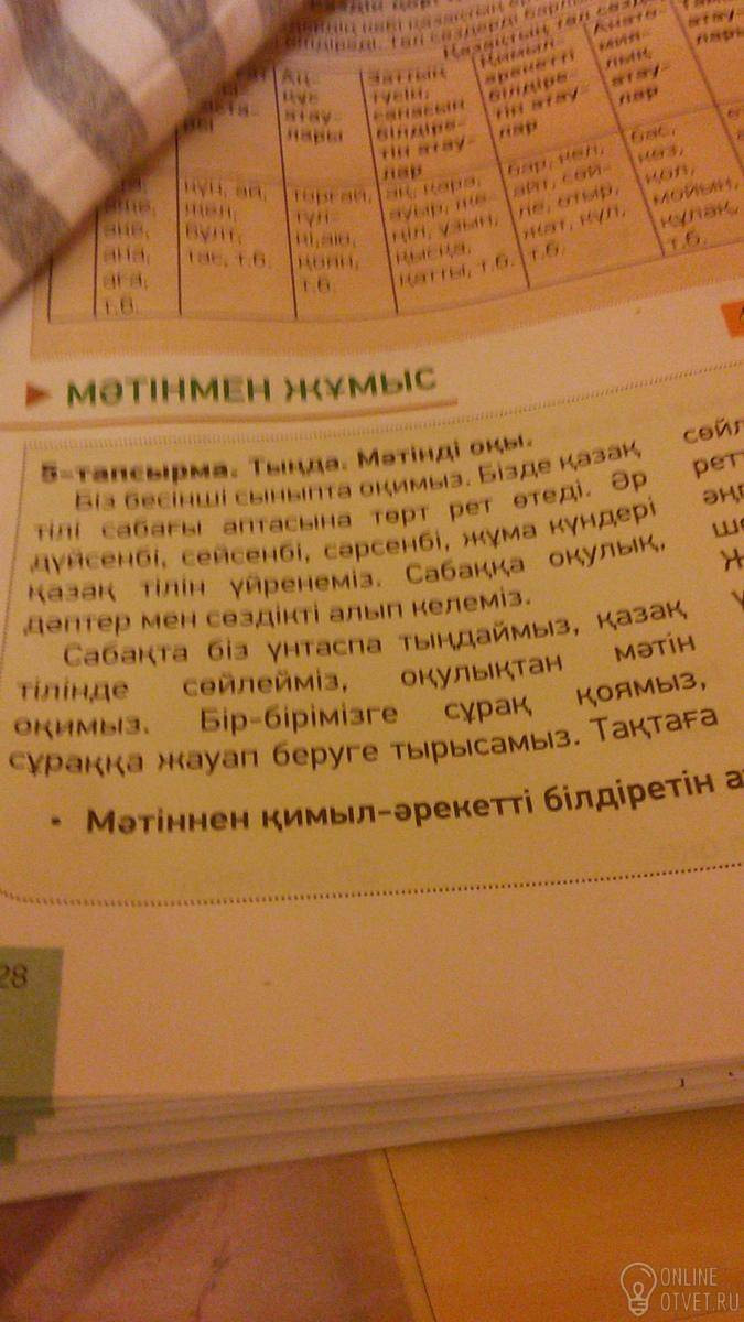 на уроке мы внимательно слушаем,разговариваем на казахском,читаем из книги.задаем друг другу вопросы и отвечаем на них.