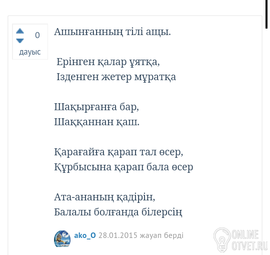 Не нашли подходящего ответа на вопрос или ответ отсутствует? Воспользуйтесь поиском по сайту, чтобы найти все ответы на похожие вопросы в разделе Қазақ тiлi.