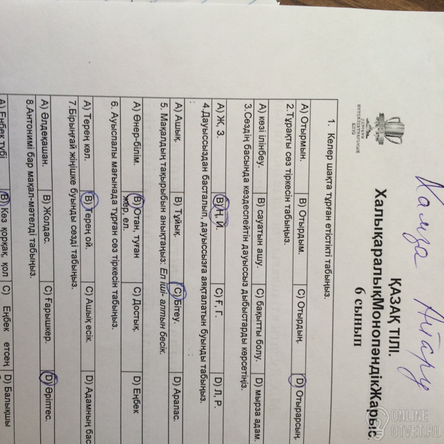 Не нашли подходящего ответа на вопрос или ответ отсутствует? Воспользуйтесь поиском по сайту, чтобы найти все ответы на похожие вопросы в разделе Қазақ тiлi.