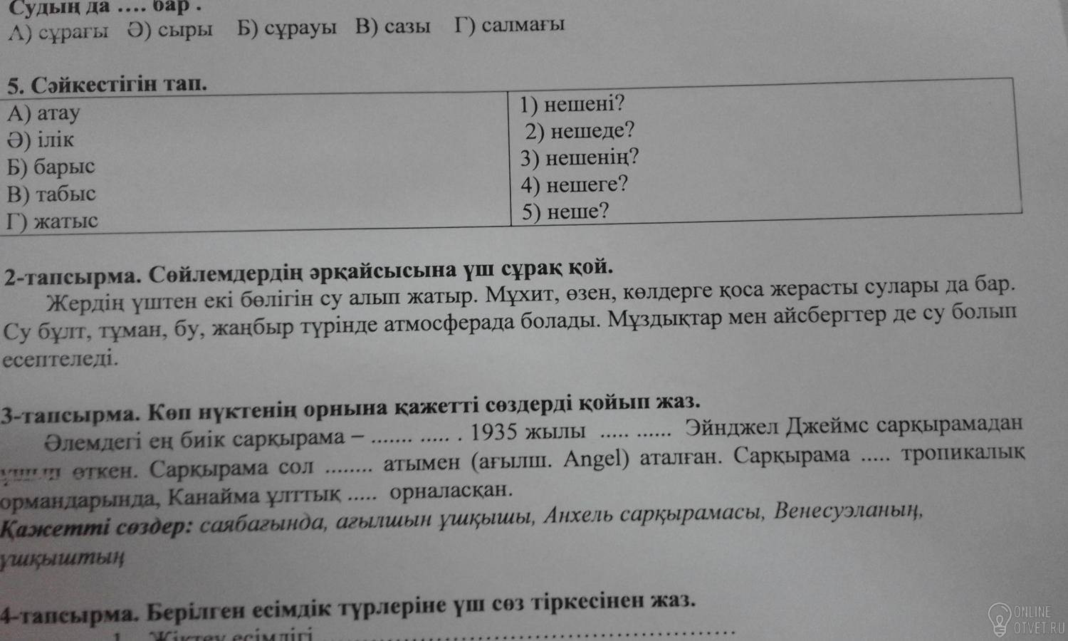 Не нашли подходящего ответа на вопрос или ответ отсутствует? Воспользуйтесь поиском по сайту, чтобы найти все ответы на похожие вопросы в разделе Қазақ тiлi.