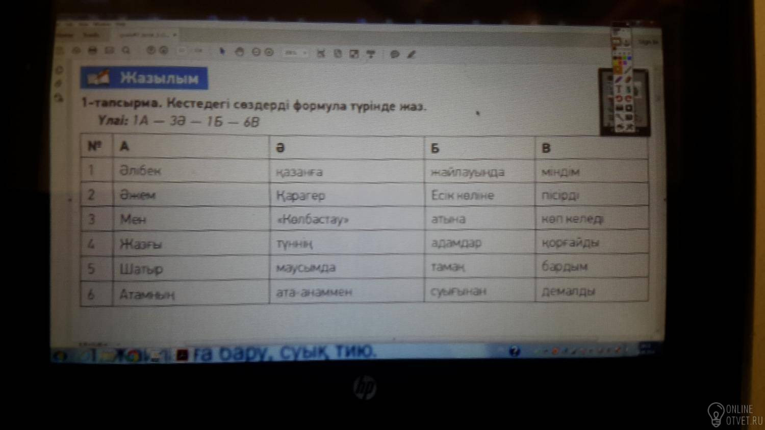 Мен ата анаммен Есік көліне бардым 3-а 6-ә 2-б 5-в