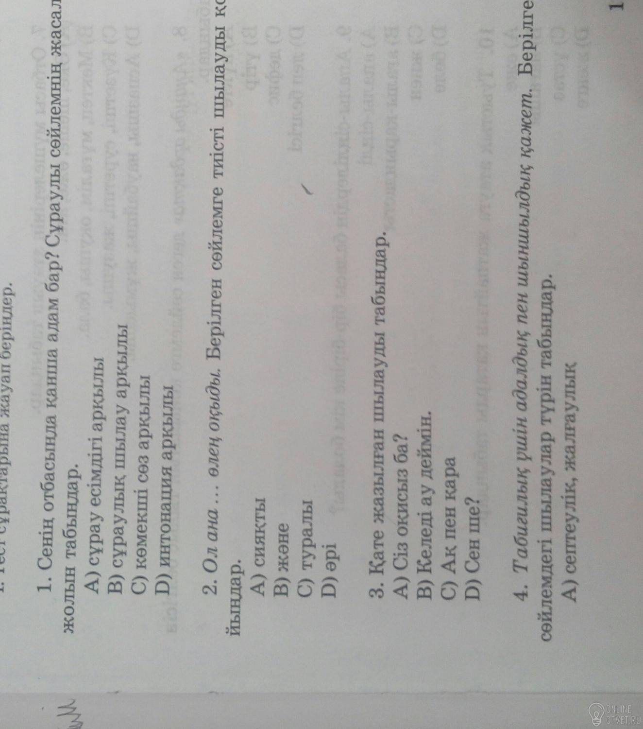 Не нашли подходящего ответа на вопрос или ответ отсутствует? Воспользуйтесь поиском по сайту, чтобы найти все ответы на похожие вопросы в разделе Қазақ тiлi.