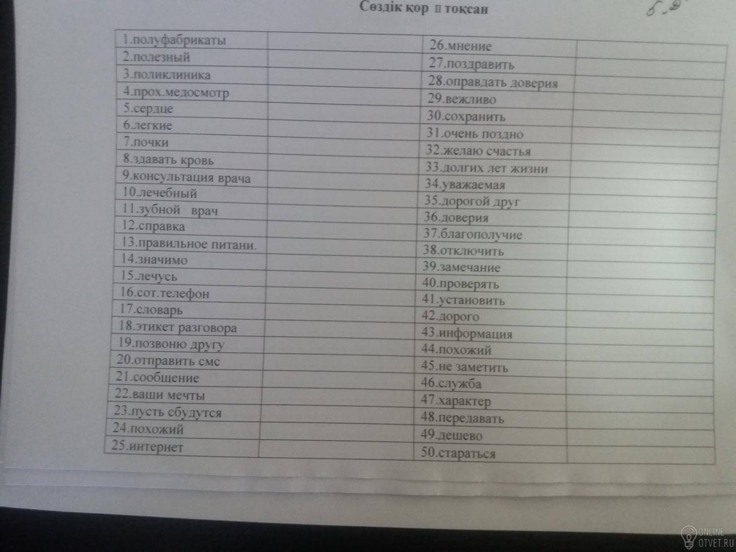 Не нашли подходящего ответа на вопрос или ответ отсутствует? Воспользуйтесь поиском по сайту, чтобы найти все ответы на похожие вопросы в разделе Қазақ тiлi.