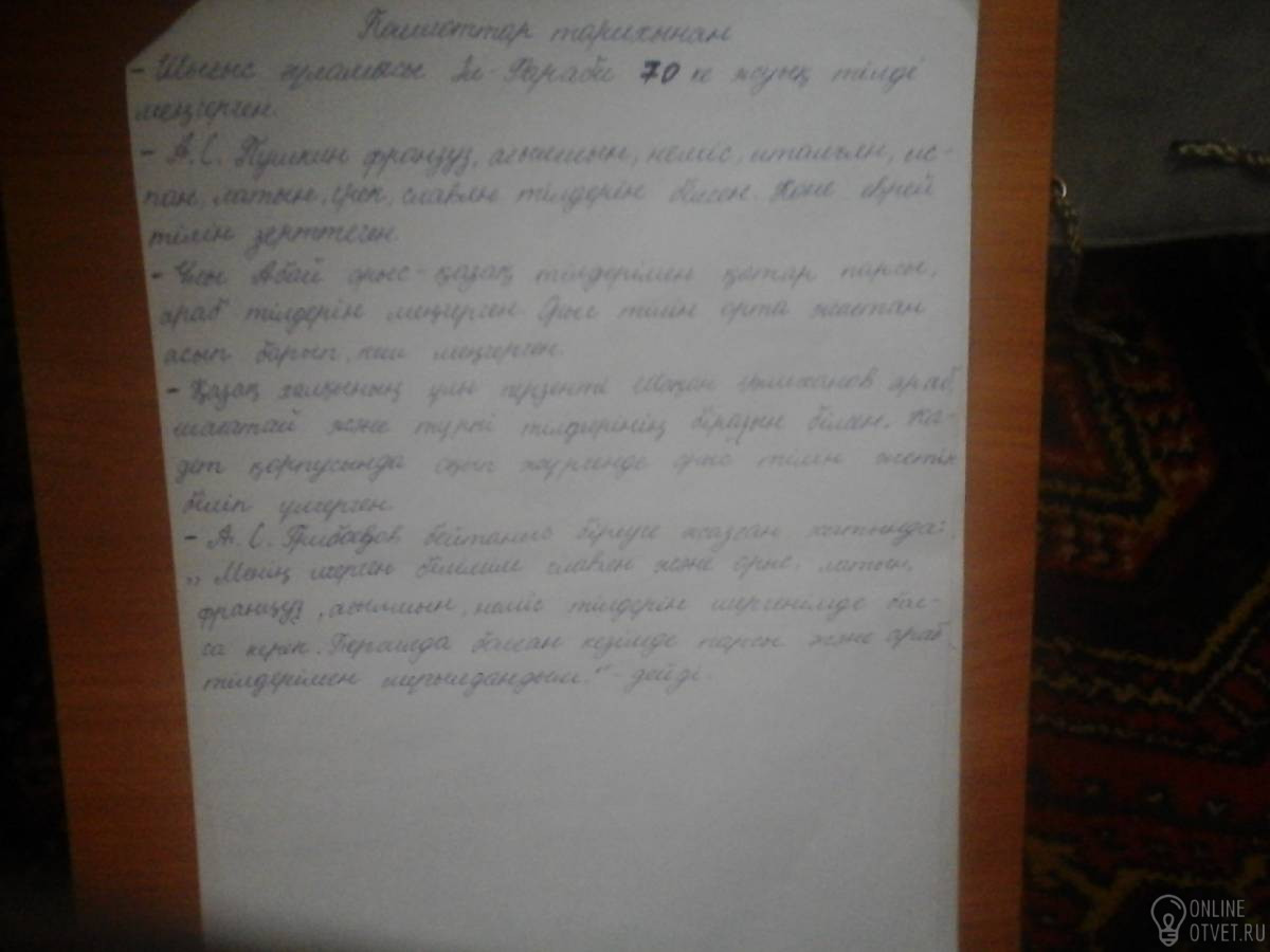 Не нашли подходящего ответа на вопрос или ответ отсутствует? Воспользуйтесь поиском по сайту, чтобы найти все ответы на похожие вопросы в разделе Қазақ тiлi.
