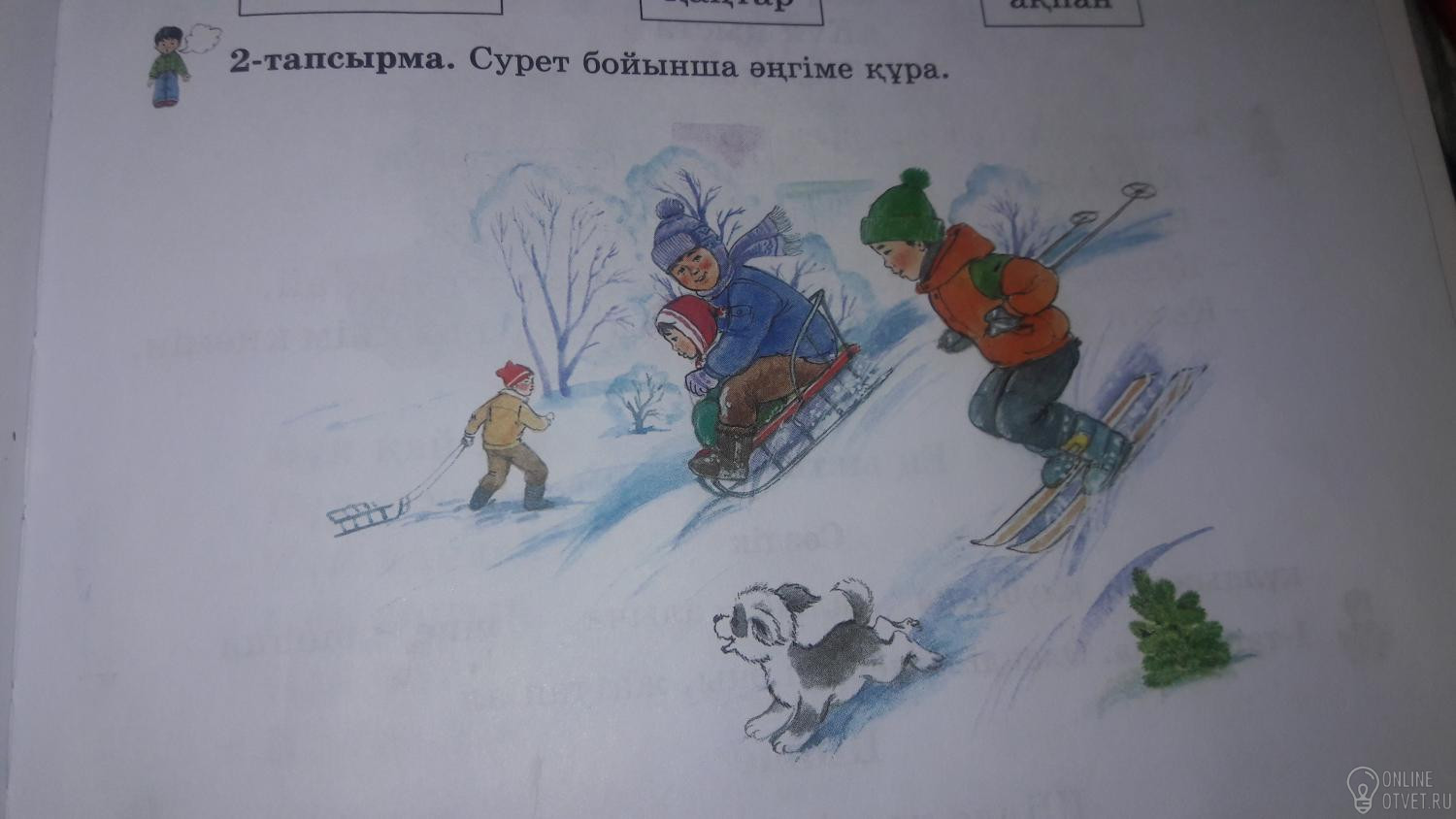 Мен жэне меннын достар шанғы тебемыз.Олар Маша,Саша,Дима жэне кишкентай ит.Дима санки тебеды.Маша жэне дима коньки тебесын.Ал ит секыреды.Мен кыс жаксы коремын.