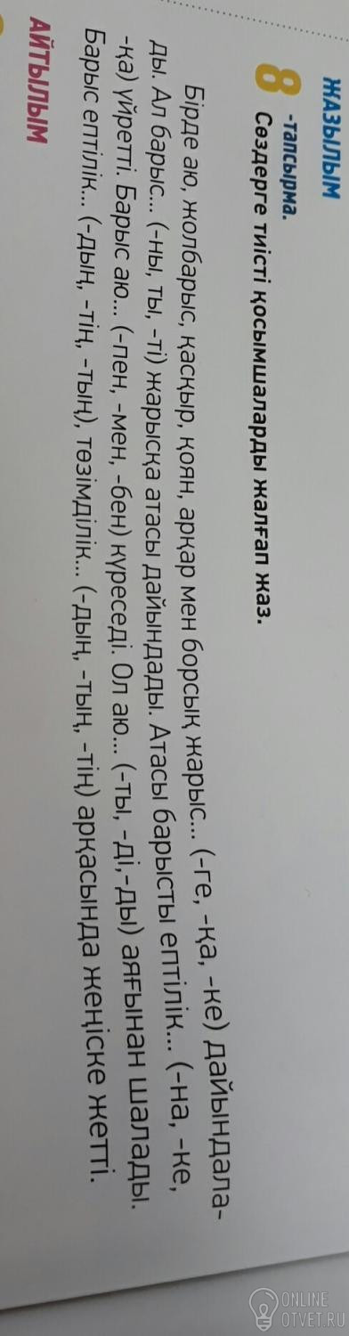 Не нашли подходящего ответа на вопрос или ответ отсутствует? Воспользуйтесь поиском по сайту, чтобы найти все ответы на похожие вопросы в разделе Қазақ тiлi.