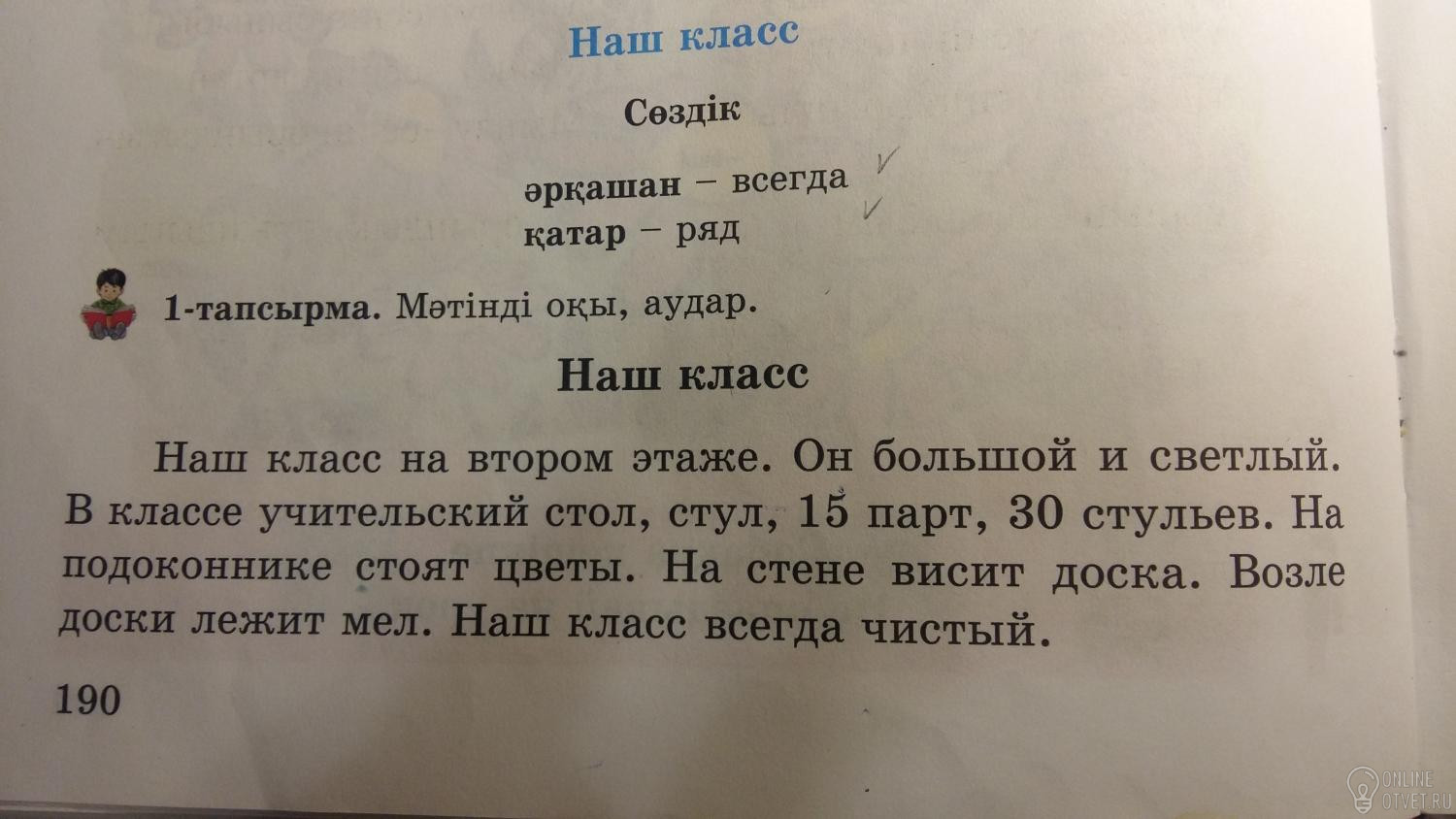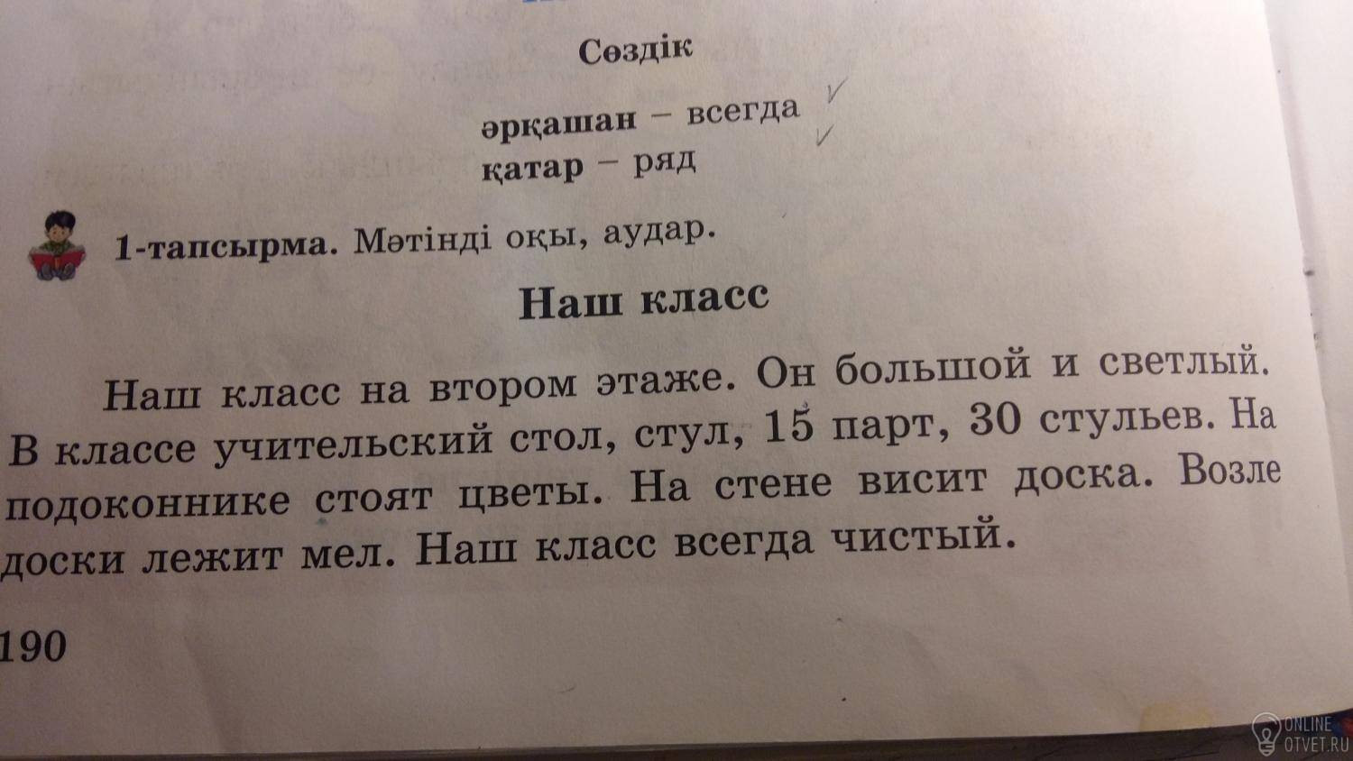 Біздің сынып 2 қабатта . Ол үлкен əрі жарық . Мұғалімнің үстелі жəне де 15 парта 30 орындық . Терезенің алдында гүлдер орналасқан . қабырғада тақты ілініп тұр . біздің сынып əрдайым таза .