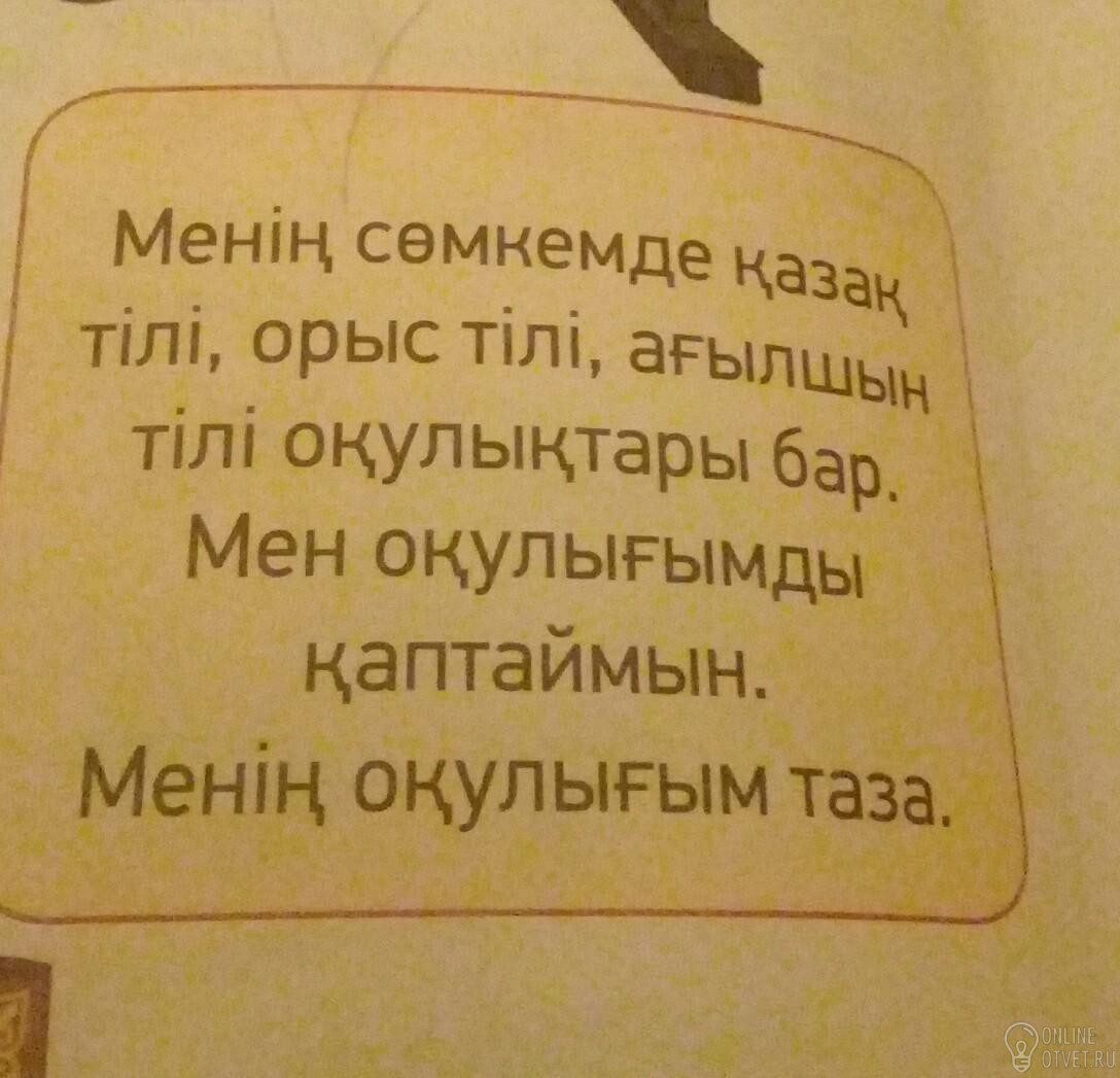 В моем сумке есть книги по казахскому языку, по русскому языку и по англиискому языку. Я оберну свои учебники. Мои учебники чистые.