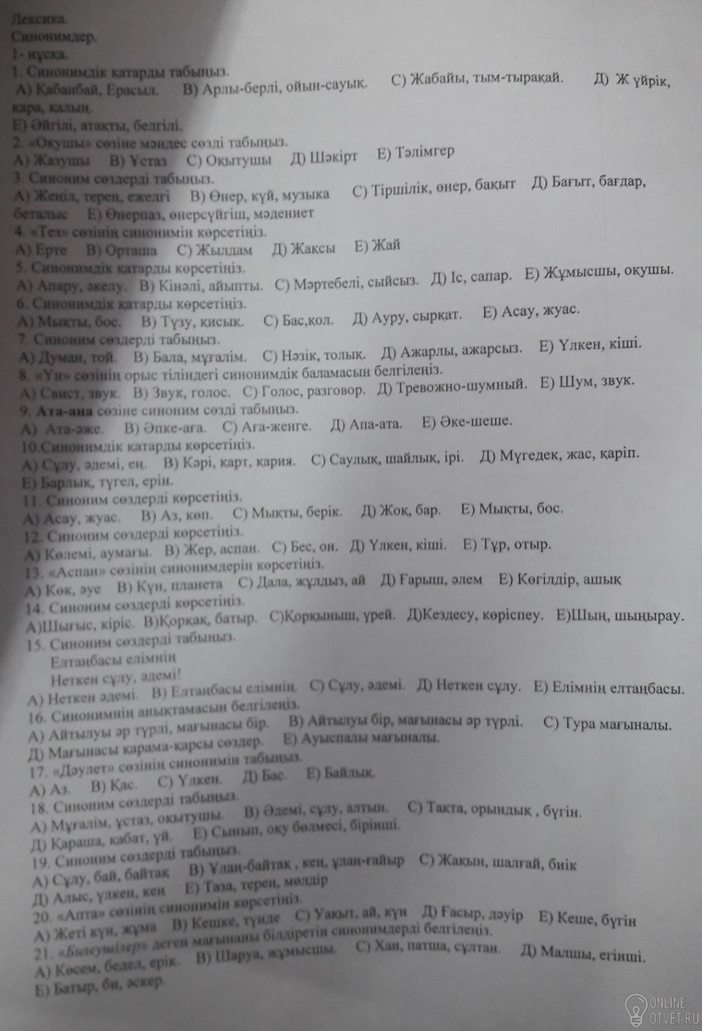 Не нашли подходящего ответа на вопрос или ответ отсутствует? Воспользуйтесь поиском по сайту, чтобы найти все ответы на похожие вопросы в разделе Қазақ тiлi.
