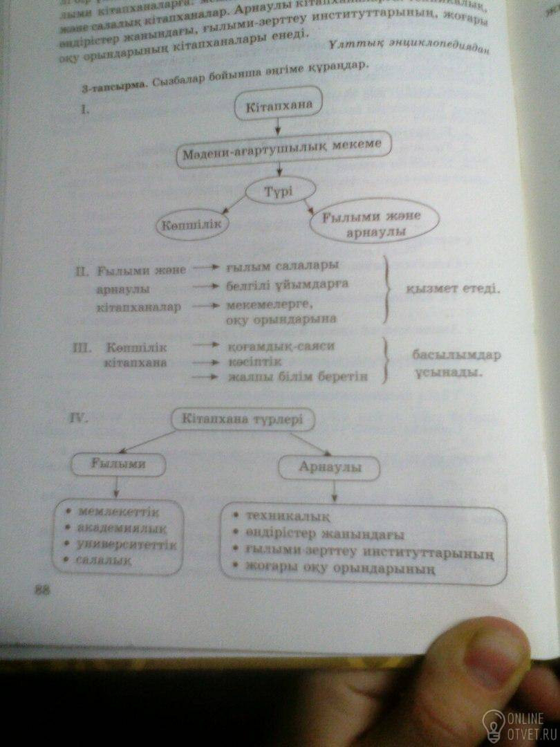 Кітапхана ол мадени ағартушы мекеме .Турлеры коп мысалы: көпшіліг ғылыми кітапханалар.Ғылыми кітапхана кызметы :гылым салалары, оку орындарына, белгілі уйымдарга мекемелерге кызмет етеды.Көпшілік кітапханамынын кызметы : қоғамдық саяси касіптік жалпы былым береды осындай басылымды усынады.