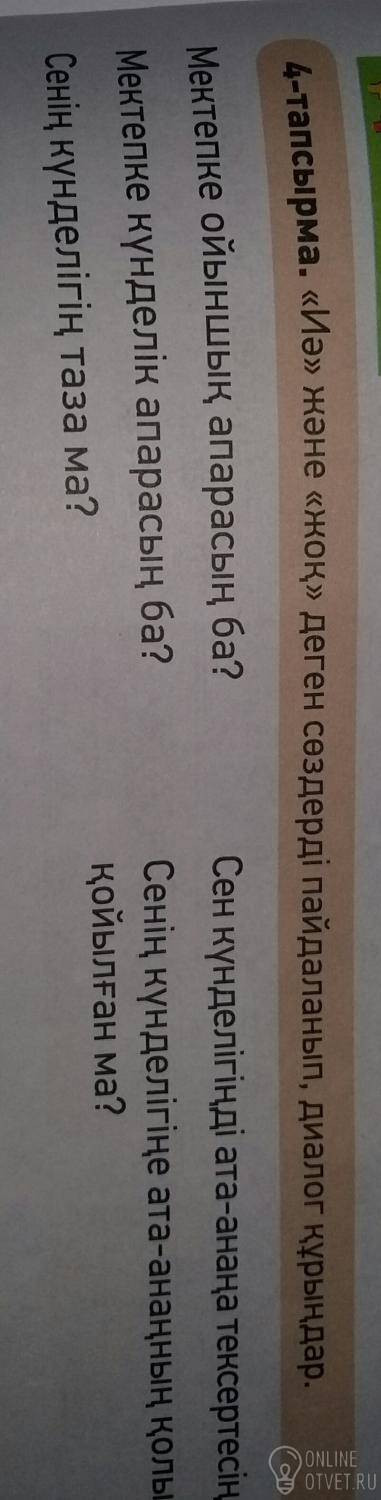 Не нашли подходящего ответа на вопрос или ответ отсутствует? Воспользуйтесь поиском по сайту, чтобы найти все ответы на похожие вопросы в разделе Қазақ тiлi.