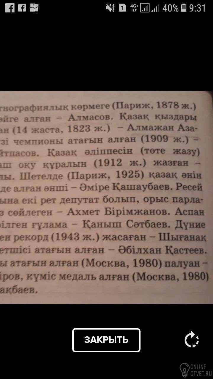 Не нашли подходящего ответа на вопрос или ответ отсутствует? Воспользуйтесь поиском по сайту, чтобы найти все ответы на похожие вопросы в разделе Қазақ тiлi.