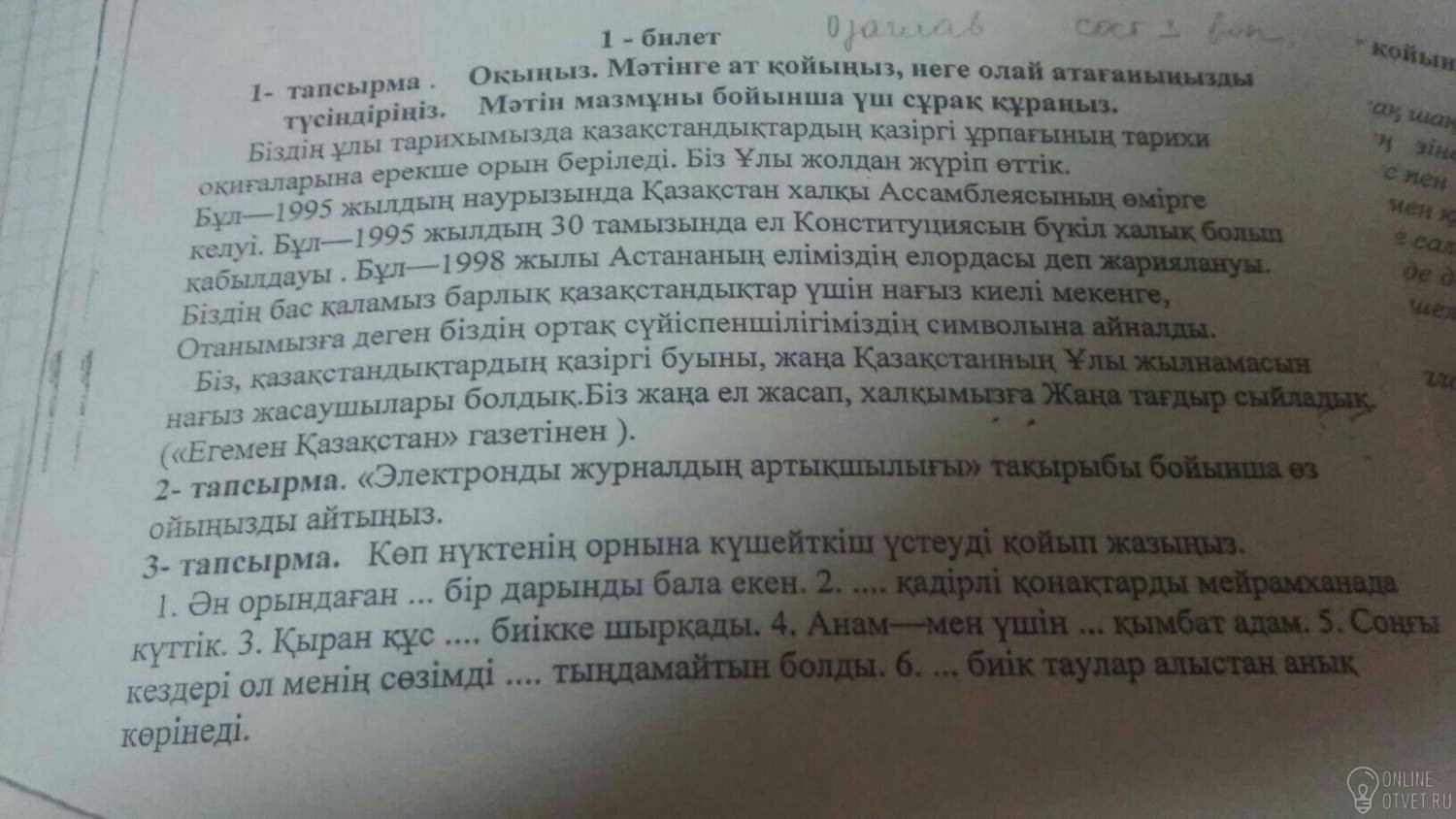 Не нашли подходящего ответа на вопрос или ответ отсутствует? Воспользуйтесь поиском по сайту, чтобы найти все ответы на похожие вопросы в разделе Қазақ тiлi.