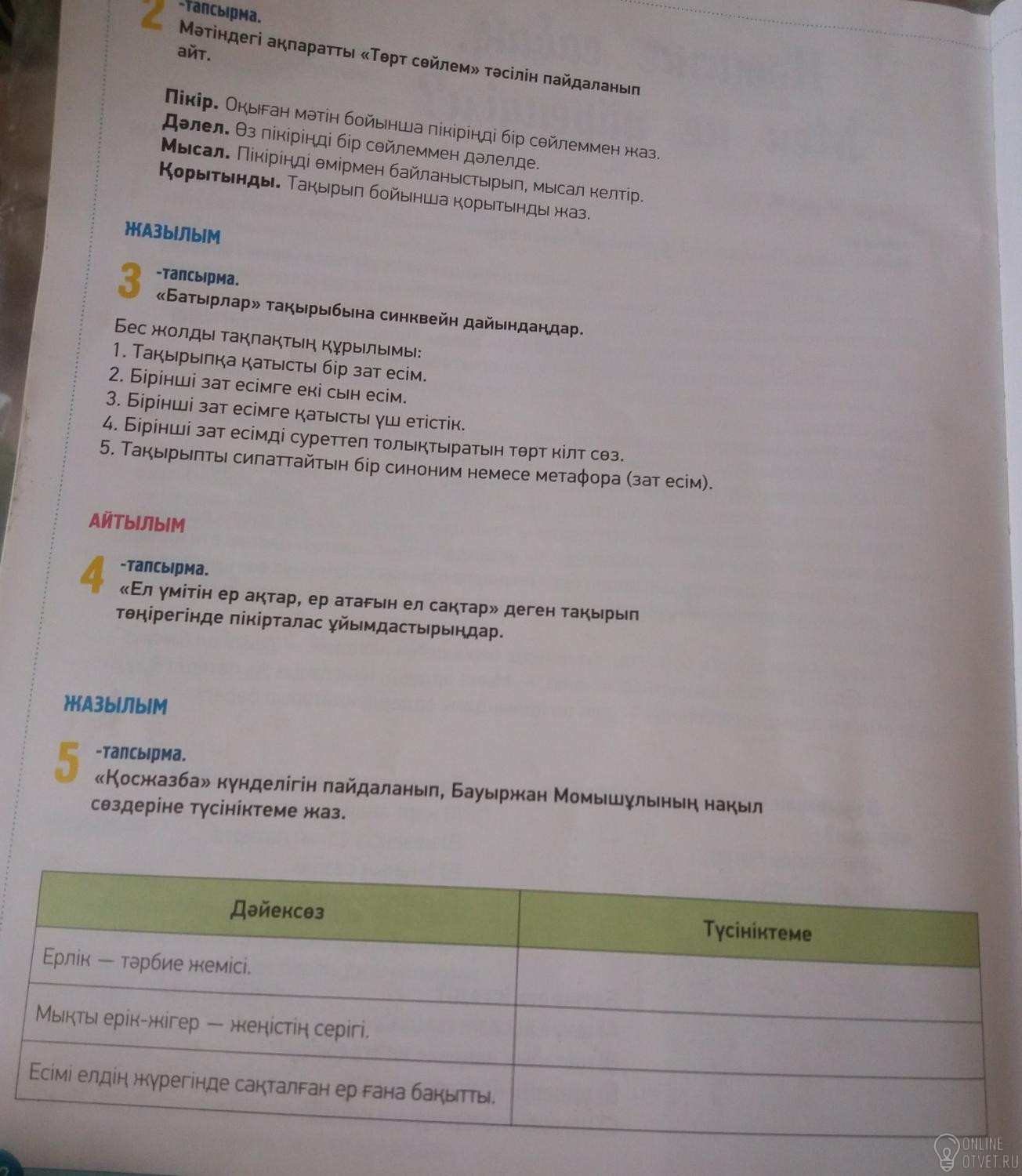 Не нашли подходящего ответа на вопрос или ответ отсутствует? Воспользуйтесь поиском по сайту, чтобы найти все ответы на похожие вопросы в разделе Қазақ тiлi.