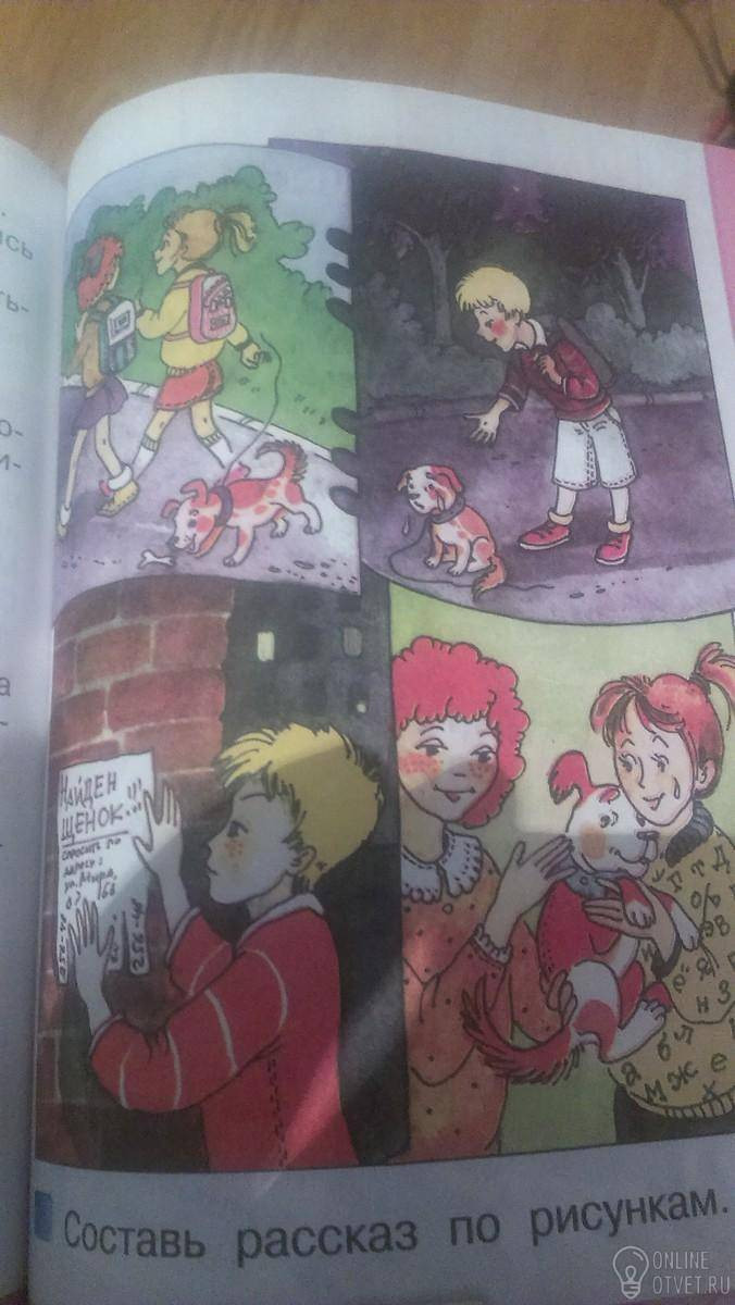 Однажды девочка гуляла с собакой.Когда девочка отвлеклась,собака вырвалась из поводка и убежала.Когда мальчик возвращался домой он увидел этого щенка.И он решил написать объявление.Когда та самая девочка проходила мимо этого объявления,она остановилась, прочитала его и позвонила по номеру,который был ьам указан.Спустя сутки мальчик позвонил ей в квартиру и вернул щенка.Всё закончилось хорошо.