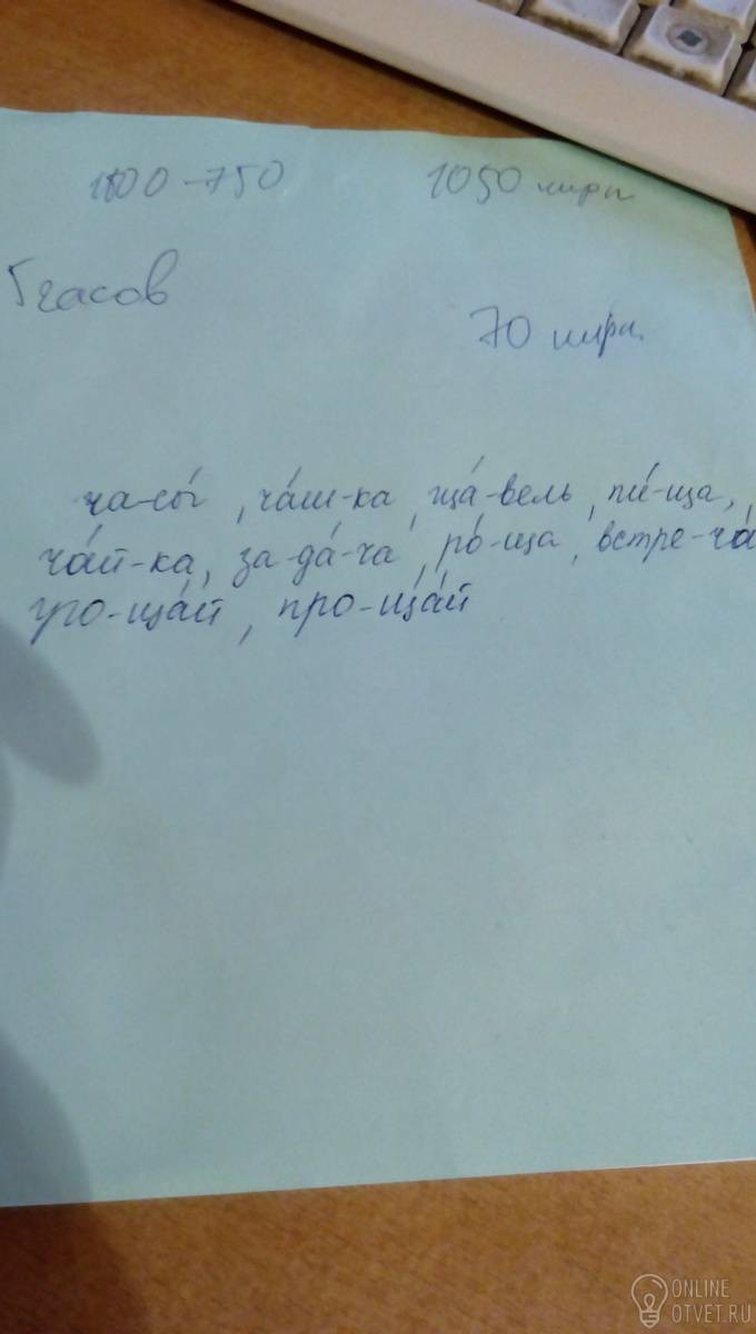 Часы, чашка, щавель, пища,чайка, задача, роща, встречай, угощай, прощай. Раздели их на слоги, поставь знак ударения.