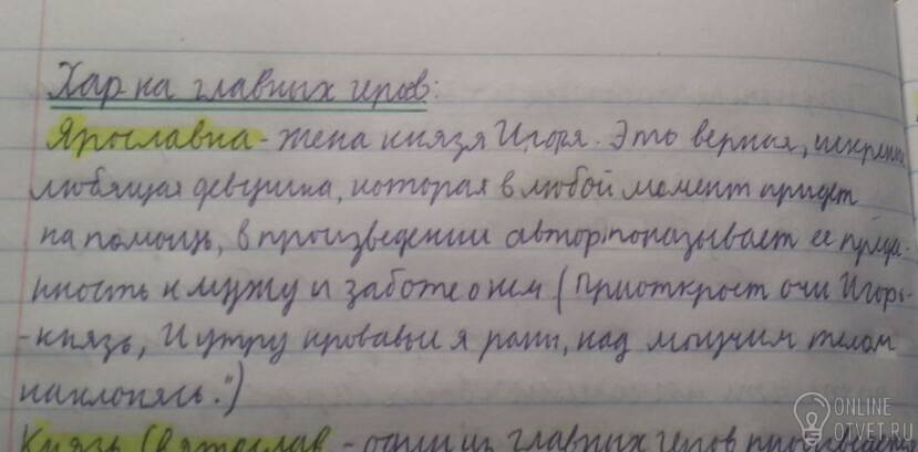 Помогите написать характеристику Ярославны "Слово о полку Игореве". С цитатами и доказательством с текста. Нужно срочно!!