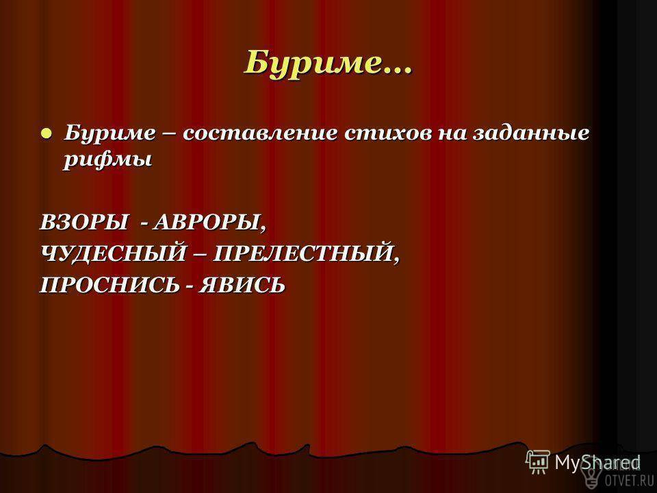 Помогите составить Буриме слова:
