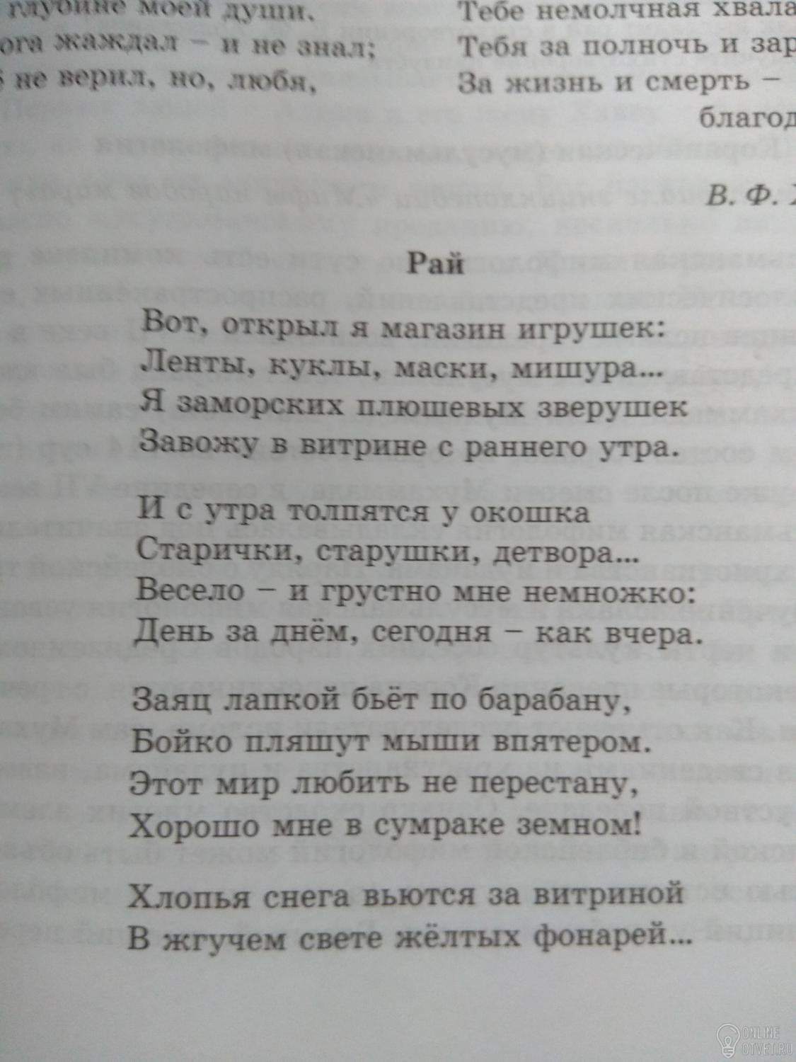 Стихотворение "Рай" написано В.Ф.Ходасевичем в 1913 году. В образе рая перед читателем предстает магазин детских игрушек.