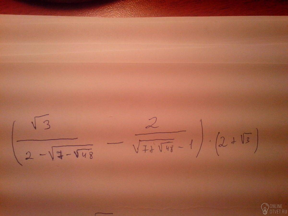 (√3/(2-√(7-√48)) - 2/(√(7+√48)-1)*(2+√3) (1)