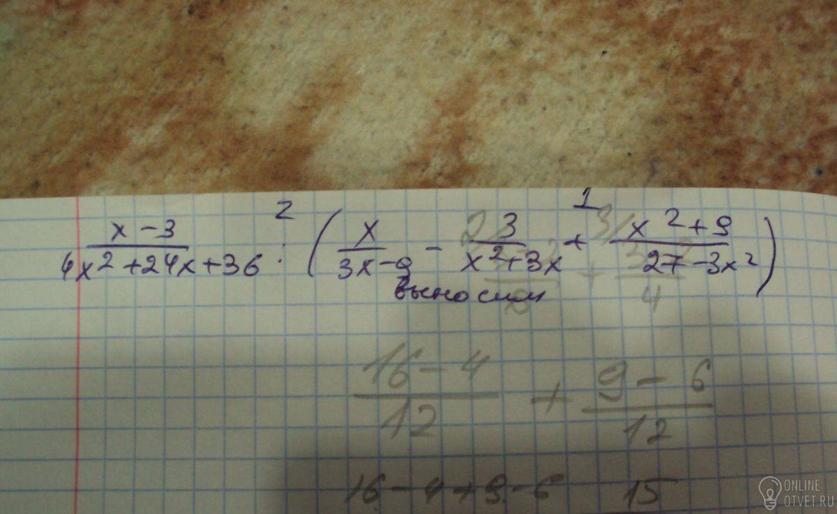 Раскроем скобки: Решив квадратное уравнение в числителе, получим, что х1=х2=3 Подставим в выражение: