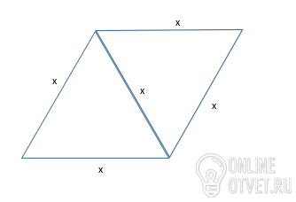 ПОМОГИТЕ!!!Четырехугольник сложен из двух равносторонних треугольников с периметром 27 см. Определи периметр четырехугольника.
