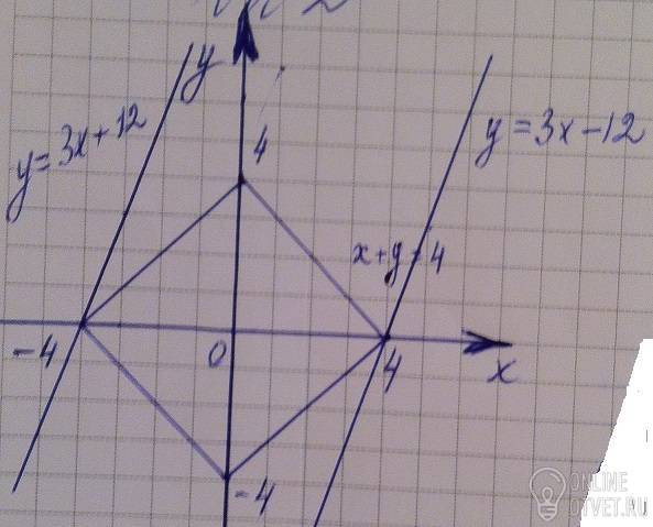График уравнения | x | + | y | =4 - квадрат, ограниченный прямыми: