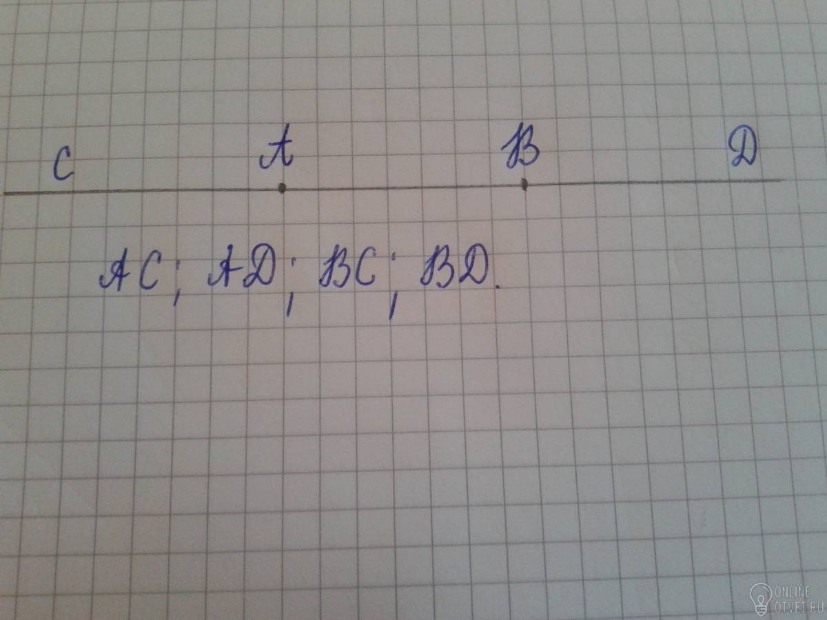 Отметьте на прямой две точки А и В. Сколько получилось лучей с началом в этих точках