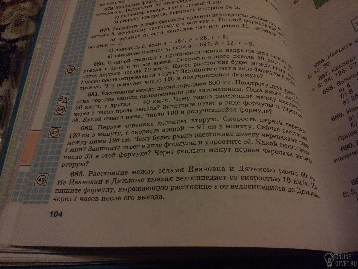 Номер 680 ответ 120•t. 120 обозначает скорость удаления поездов друг от друга