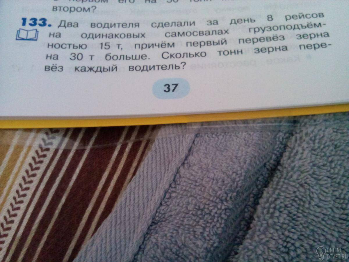 8*15=120т перевезли оба водителя. 120-30=90т , 90:2=45т , 45+30=75т.Один водитель сделал 3 рейса и перевез 45т, второй водитель сделал 5 рейсов и перевез 75т. Пожалуйста!