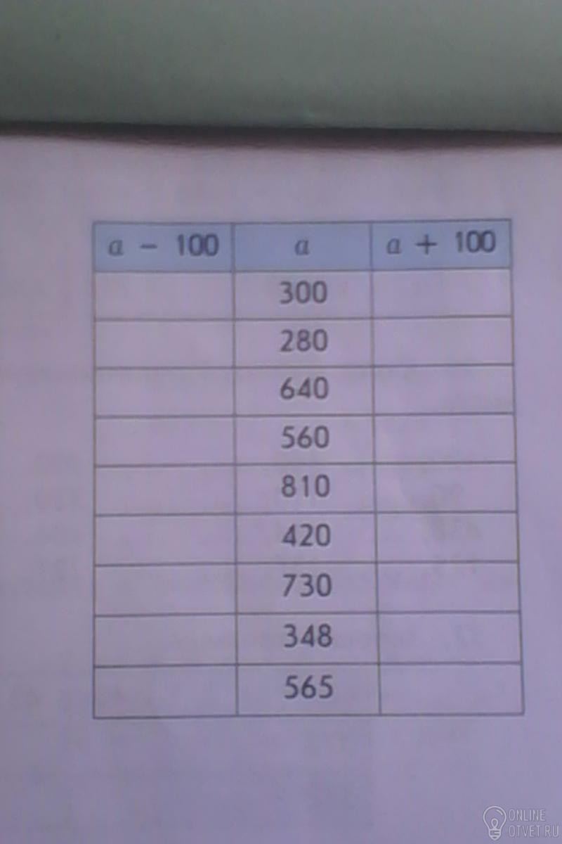 300-100=200; 280-100=180; 640-100=540; 560-100=460; 810-100=710; 420-100=320; 730-100=630; 348-100=248; 565-100=465- это тот столбик там где а - 100. 300+100=400; 280+100=380; 640+100=740; 560+100=660; 810+100=910; 420+100=520; 730+100=830; 348+100=448; 565+100=665 - это тот столбик там где а+100. 300-40=260; 280-40=240; 640-40=600; 560-40=520; 810-40=730; 420-40=280; 730-40=690; 348-40=308; 565-40=525 - это тот столбик там где а-40. 300+40=340; 280+40=320; 640+40=680; 560+40=600; 810+40=850; 420+40=460; 730+40=770; 348+40=388; 565+40=105 - это тот столбик там где а+40.