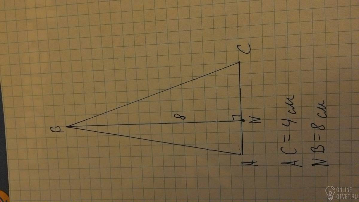 Построй треугольник,у которого одна сторона имеет длину 8см,а высота,проведенная к этой стороне,имеет длину 4см.Сколько см. каждая сторона треугольника?
