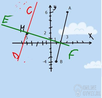 Отмтьте на координатной плоскости точки А(3;6) , В(1;-4) и М(-5;2). Проведите через точку М прямую CD, параллельную прямой АВ, и прямую EF, перпендикулярную прямой АВ!