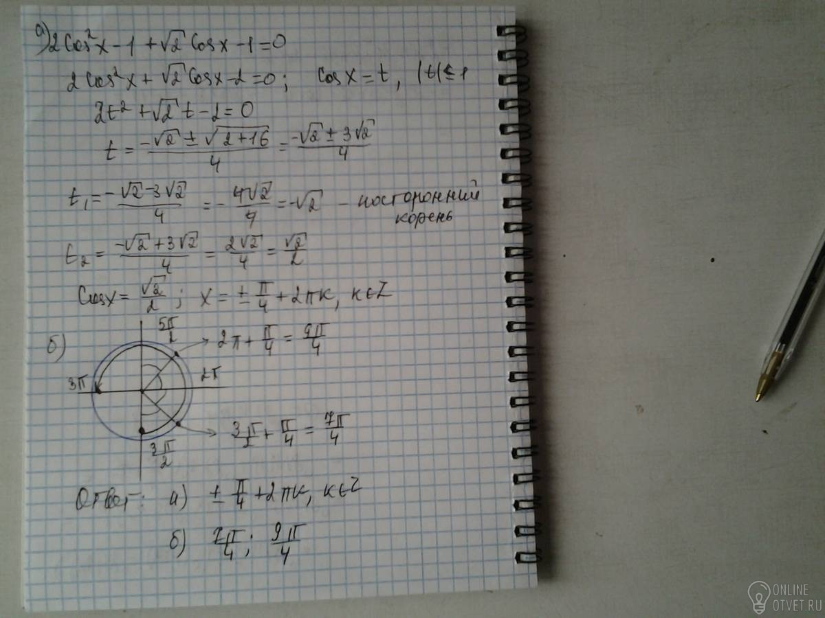 А) Решите уравнение cos2x-sqrt 2 sin(3pi/2-x)-1=0