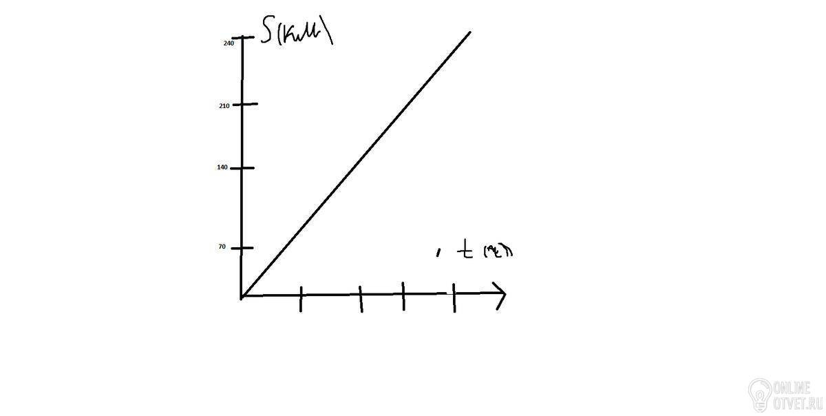 На рисунке 7.52 изображен график для движения поезда со скоростью 70 км/ . По графику ответьте на вопросы 1) какое расстояние прошел поезд за 2 ч? 2) за какое время поезд прошел расстояние, равное 210 км? 3) какая пропорциональная зависимость существует между расстоянием и временем на графике?