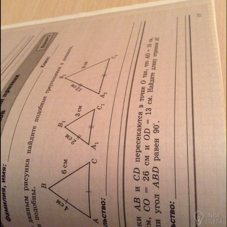 Первый и третий треугольники подобны по третем признаку подобия: Если три стороны одного треугольника соответственно пропорциональны трем сторонам другого, то такие треугольники подобны.