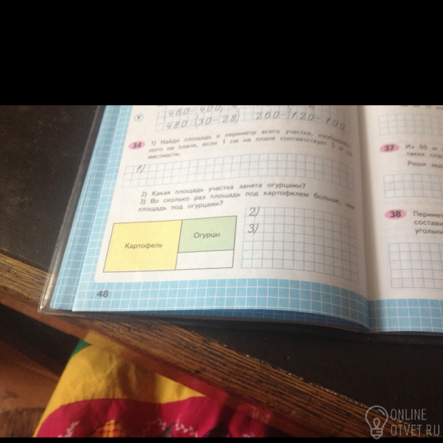 300/150=2 - в 2 раза площадь участка под картофелем больше, чем под огурцами.