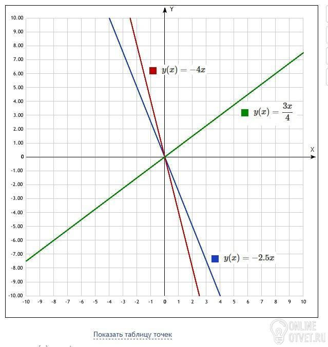 Построить график прямой пропорциональности : 4) у=-2.5х