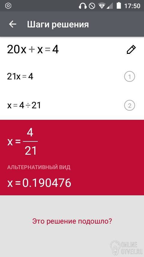 а) 20х+х=4