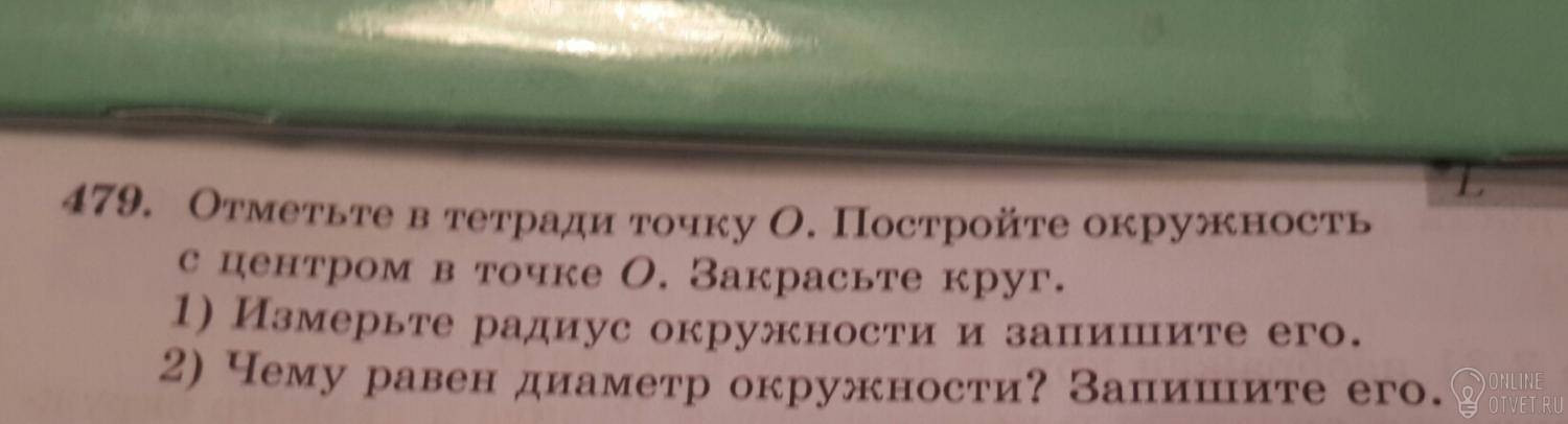 Построй окружность. На циркуле отмерь по линейке любое кол-во см. Потом запиши расстояние от точки О до окружности как радиус, а затем возьми 2 радиуса и запиши это как диаметр.