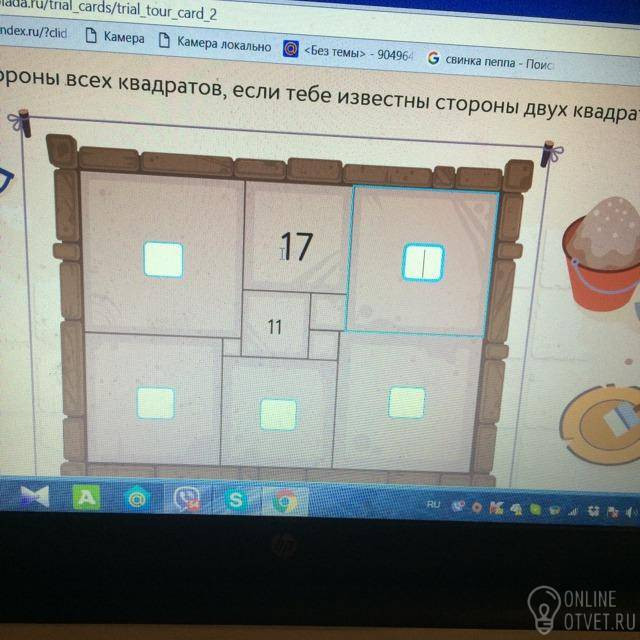 Маленький квадрат равен 19-5-11= 3.