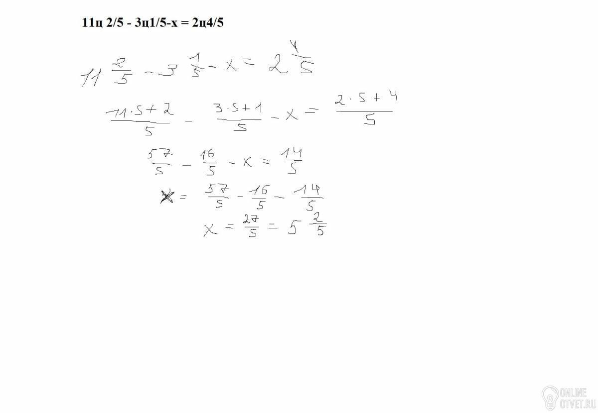 Решите уравнение, представив смешанные числа в виде неправильных дробей: 11ц 2/5 - 3ц1/5-х = 2ц4/5