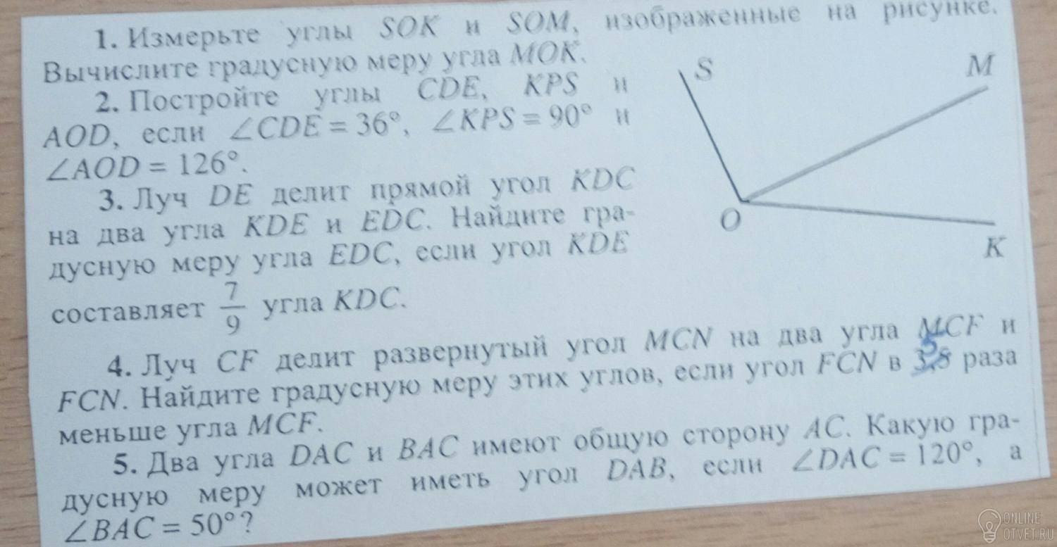 Т.к угол kdc - прямой, то он равен 90 гр. Значит 7/9 от kdc=90 гр./ 9 * 7=70 гр. Значит edc = 90 гр.-70 гр.=20 гр.
