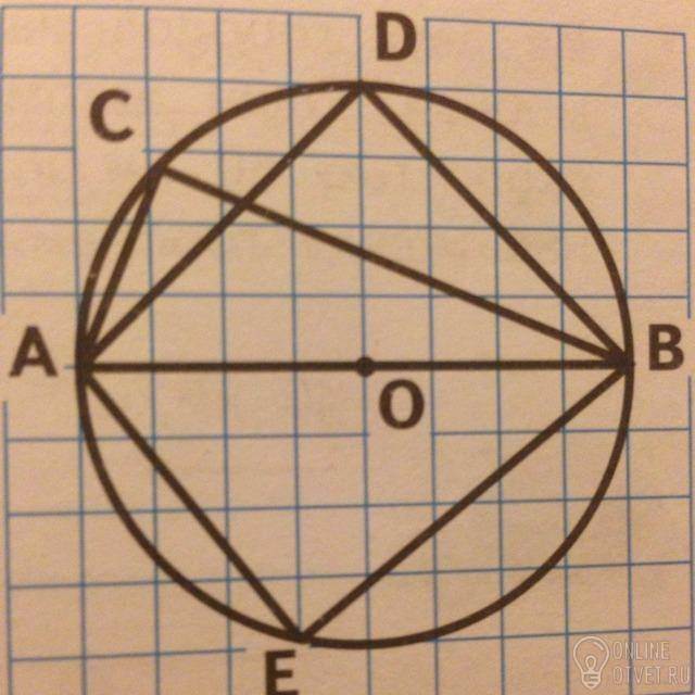 Перечерти в тетрадь окружностью центром в точке О и радиусом ОА. Проведи в окружности диаметр АВ и отметь точки C,D,E, как показано на рисунке.(фото будет в самом конце)