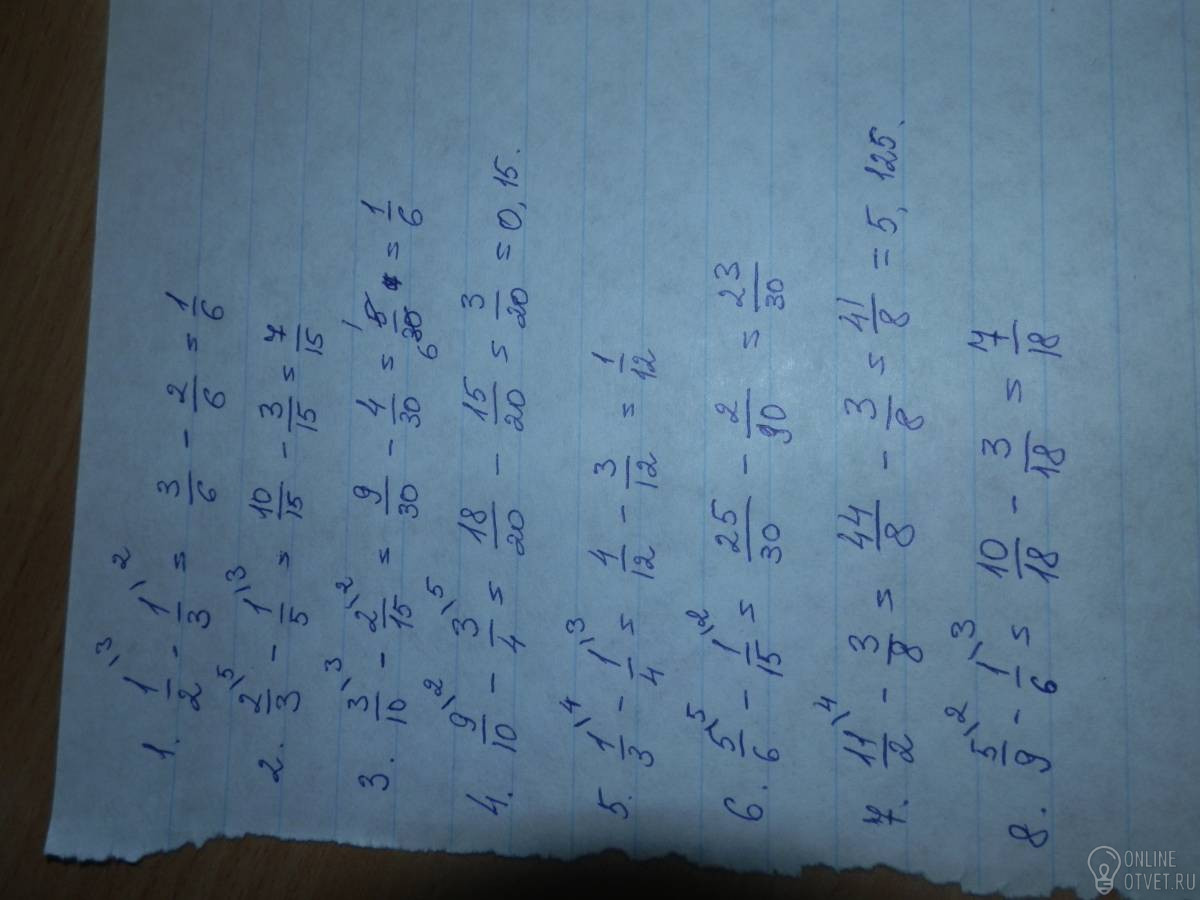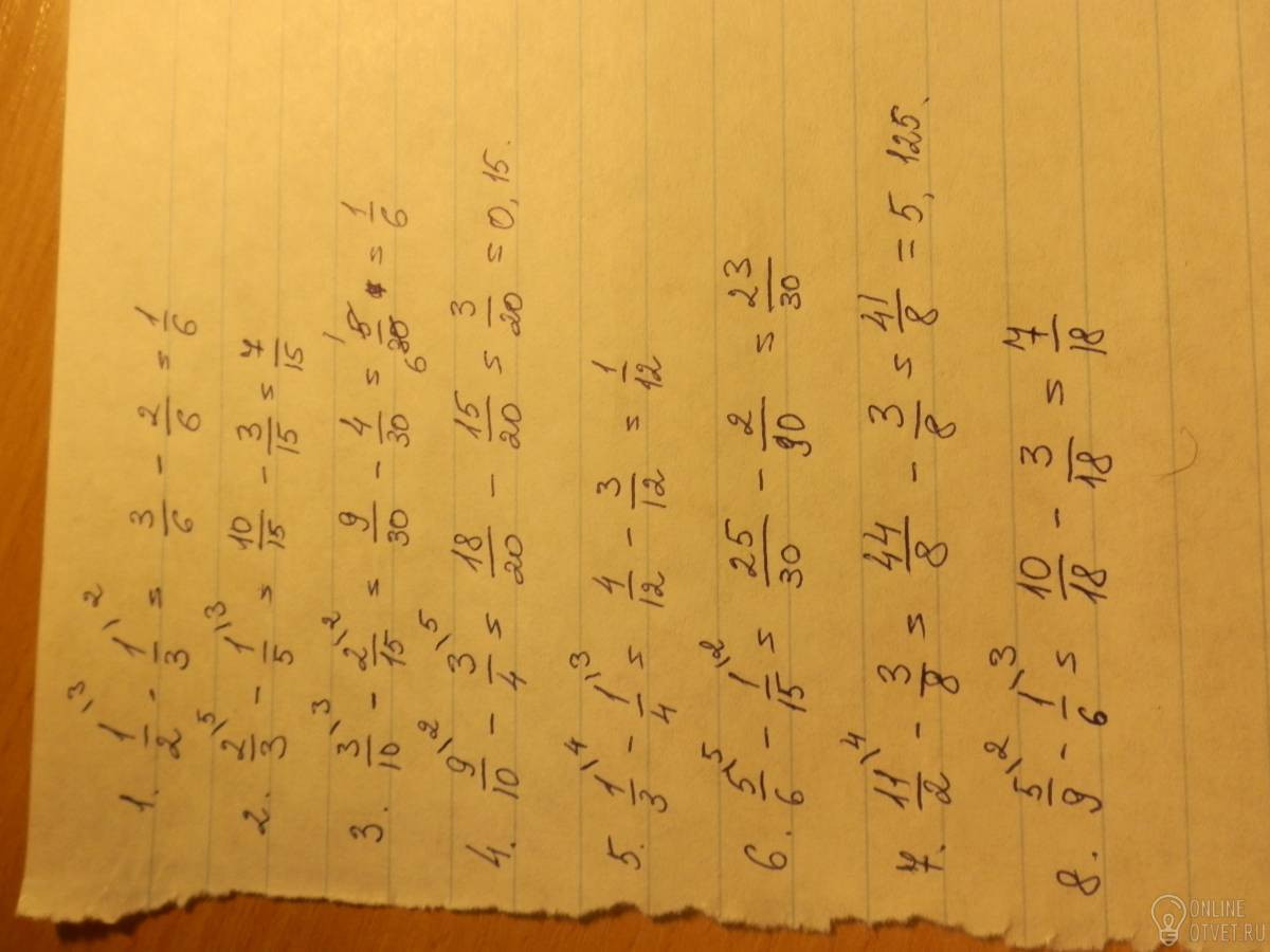 1/3-1/4, 5/6-1/15, 11/2-3/8, 5/9-1/6.