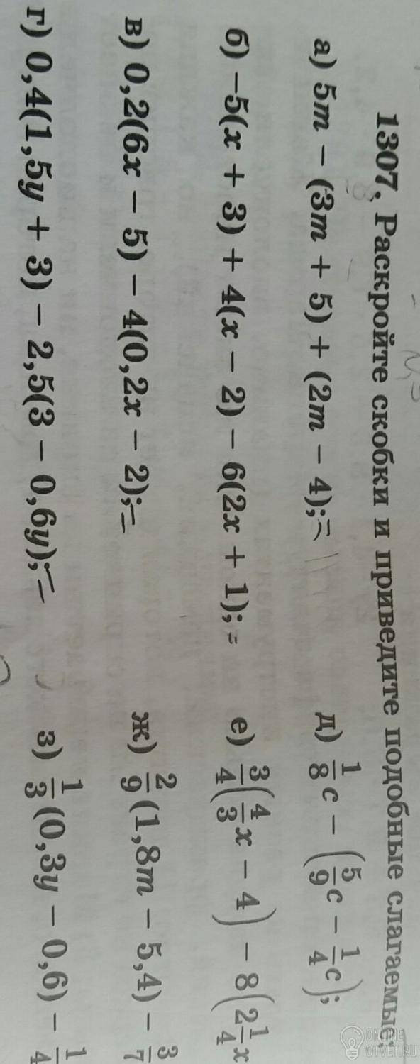 0,2(6x - 5) - 4(0,2x - 2) = 1,2x - 1 - 0,8x + 8 = 0,4x + 7
