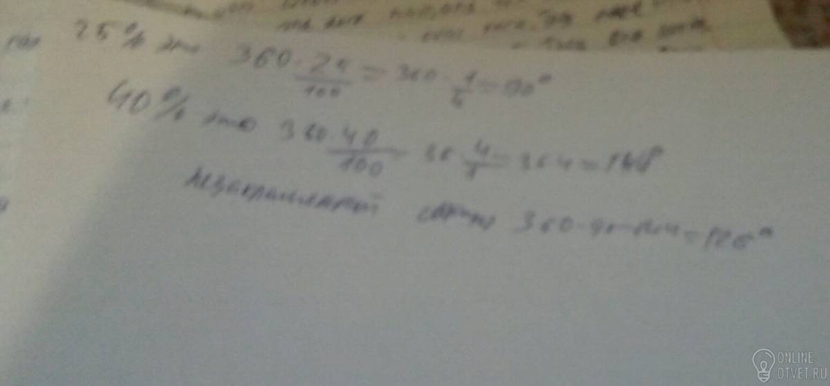 Разделите круг на секторы так чтобы их углы состовляли 25%и40%полного угла.